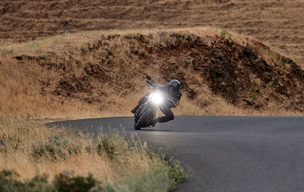 Discos flutuantes duplos de Ø 320 mm, pinças radiais de quatro pistões com a marca Triumph, ABS otimizado para curvas