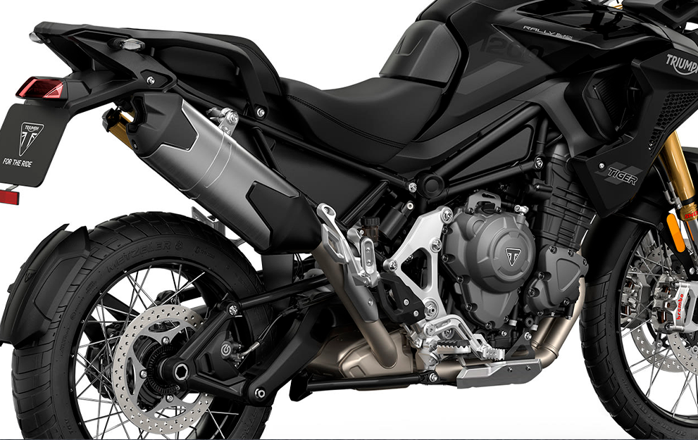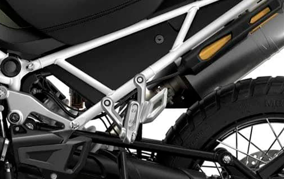 Curso da roda de 220 mm Monoshock de amortecimento semiativo Showa, com ajuste eletrônico automático de pré-carga e novo recurso de Redução de Pré-carga Ativa.