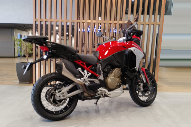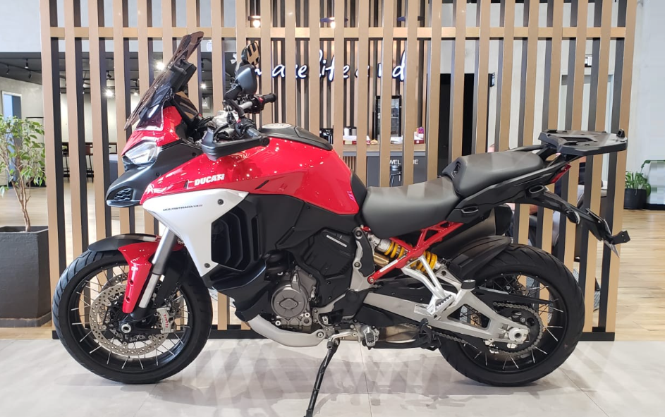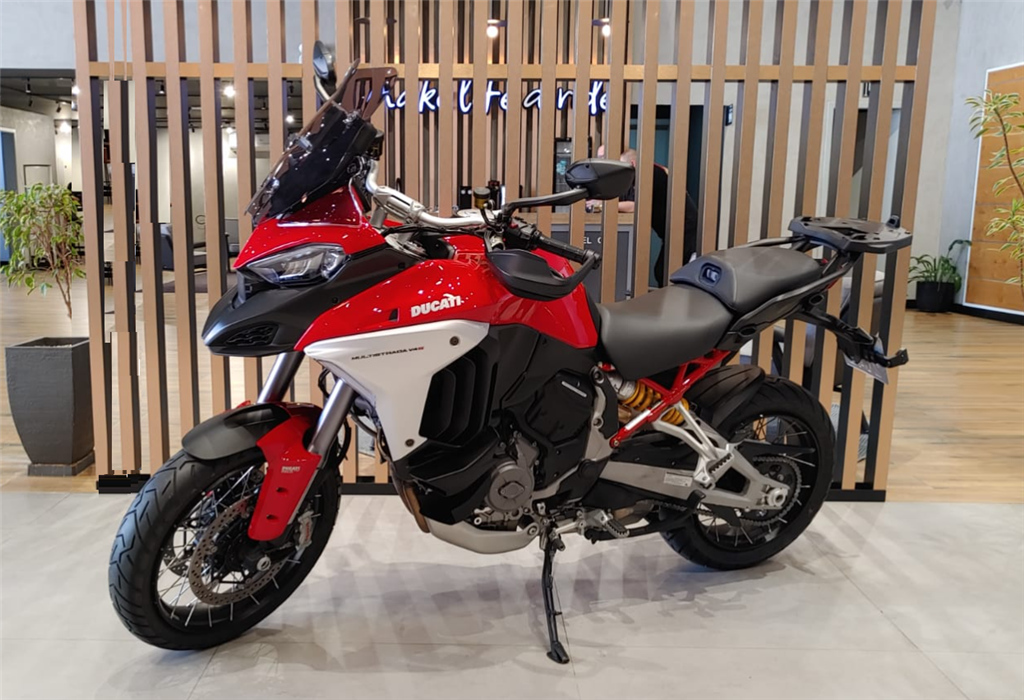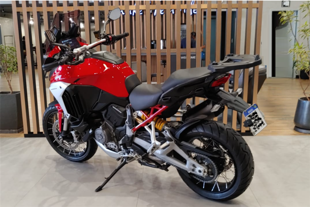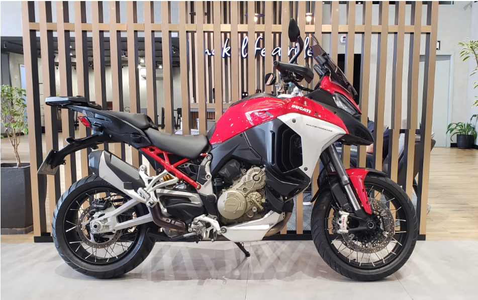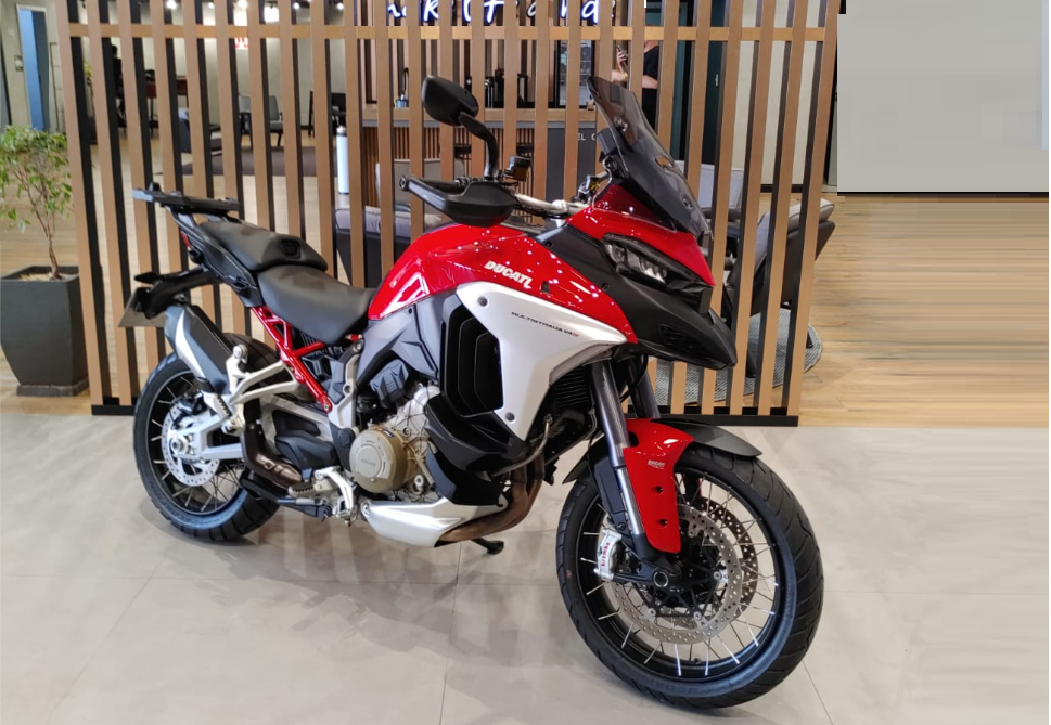 A DUCAT MULTISTRADA V4 S 2023 É UMA MOTO VERSÁTIL, TECNOLÓGICA E POTENTE, PROJETADA PARA VIAGENS LONGAS E USO ESPORTIVO, COM MOTOR V4 DE 170 CV, SUSPENSÃO ELETRÔNICA, RADAR FRONTAL E TRASEIRO PARA CONTROLE DE CRUZEIRO ADAPTATIVO E ALERTA DE PONTO CEGO. A MOTO COMBINA ODNA ESPORTIVO DA DUCATI COM O CONFORTO E A SEGURANÇA DE UMA BIG TRAIL, ALÉM DE CONTAR COM INTERVALOS DE MANUTENÇÃO LONGOS, COM TROCA DE ÓLEO A CADA 15.000 KM E FOLGA DE VÁLVULAS A CADA 60.000 KM. MOTOR V4 1158 CC, 170 CV - SUSPENSÃO ELETRÔNICA SEMIATIVA - RADARES COM ACC E ALERTA DE PONTO CEGO - FARÓIS LED COM LUZ DE CURVA - PAINEL TFT 6,5” - MUITO CONFORTÁVEL PARA VIAGENS, COM MALAS LATERAIS - MANUTENÇÃO ESPAÇADA: ÓLEO 15.000 KM, VÁLVULAS 60.000 KM